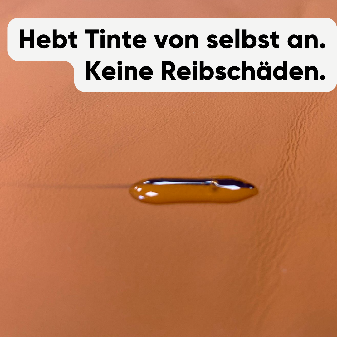 Ein kraftvoller Farbentfernungsreiniger gegen Verschmutzungen durch Tinte und Stifte, der Leder-, PU- und PVC-Oberflächen nicht beschädigt.