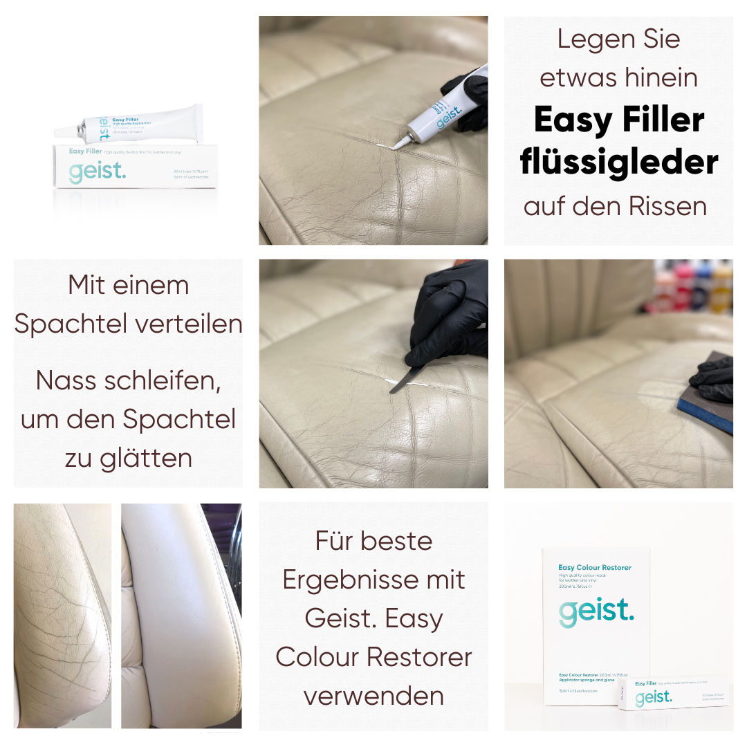 Tiefe Kratzer auf Lenkrädern, Autositzen oder Sofas müssen möglicherweise vor dem Färben mit Geist. Easy Filler aufgefüllt und repariert werden.