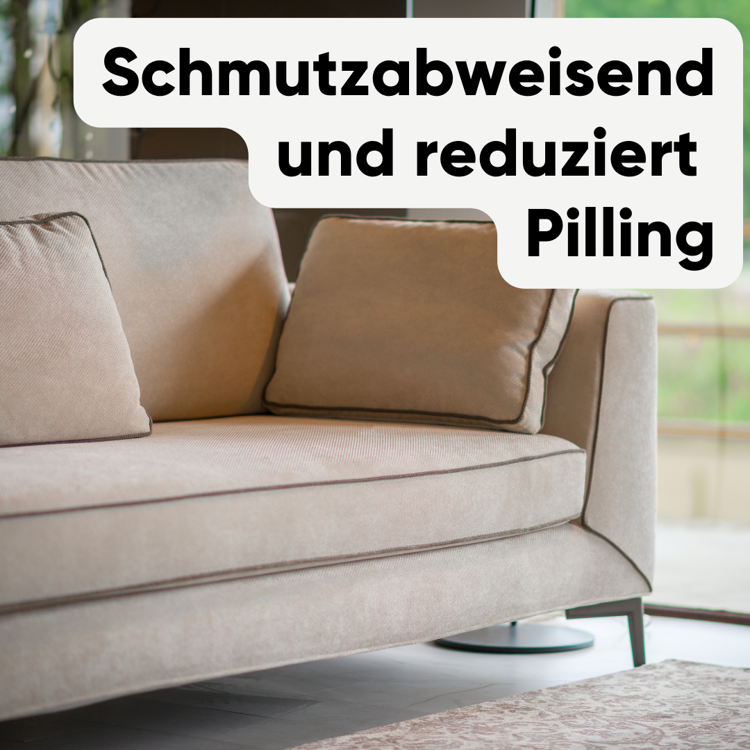 • Nach der Reinigung: Die gereinigte Oberfläche muss mit einem feuchten Tuch gut abgewischt werden, um eventuelle Reinigungsmittelrückstände zu entfernen. Der Schutz sollte auf das trockene Textil aufgesprüht werden.